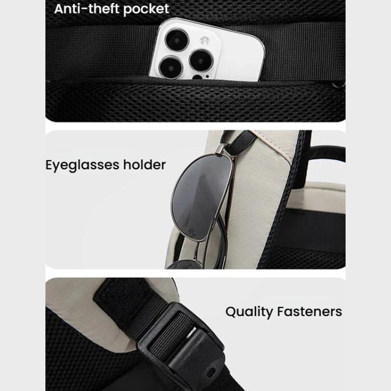 | سایر ویژگی ها | ظرفیت بزرگ، محافظت ویژه از تجهیزات دیجیتال، مقاوم در برابر آب و لکه، طراحی چندمنظوره، سبک و قابل حمل |
